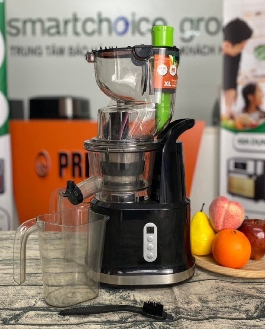 Princess Easy Fill Slowjuicer, 2 hộp 900 ml, chổi làm sạch, sách hướng dẫn, sách tổng hợp 30 loại nước ép, phiếu bảo hành