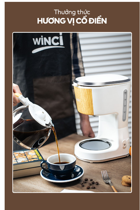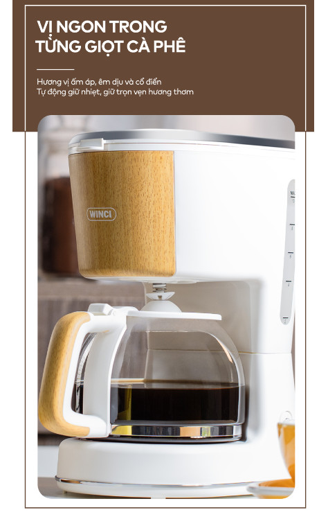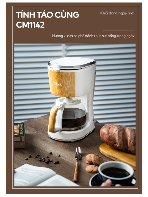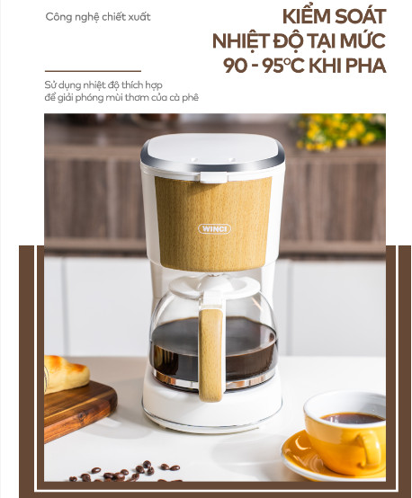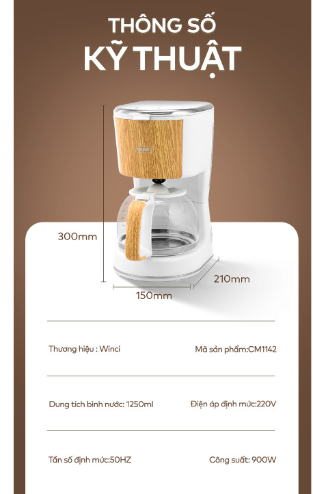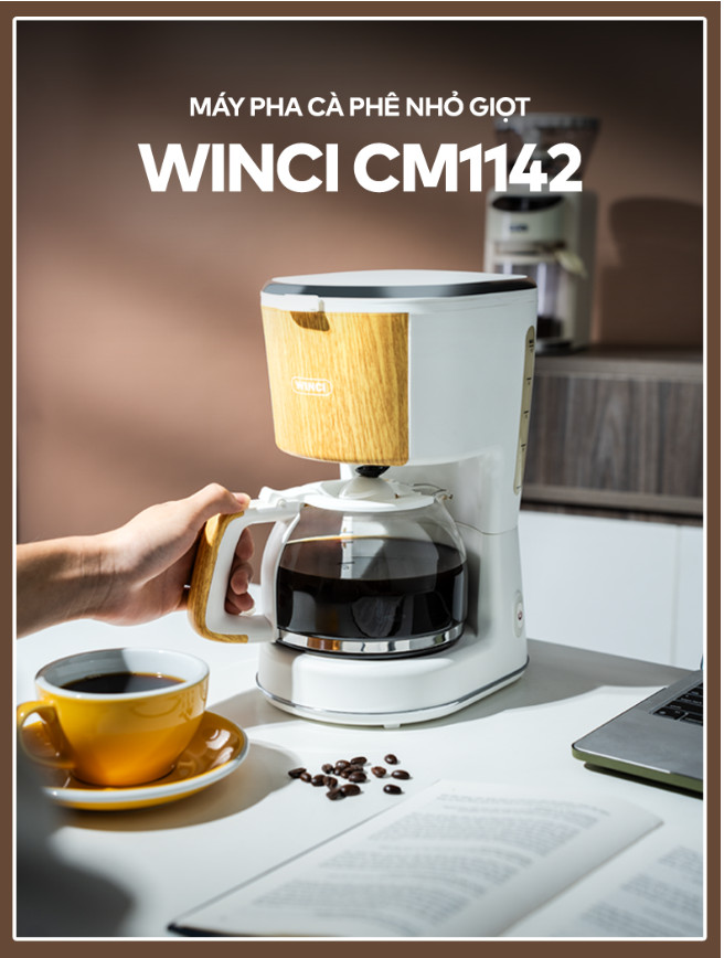 Máy pha cà phê Winci CM1142 dẫn đầu trong dòng máy pha cà phê nhỏ giọt dành cho gia đình, với công suất 900w, thiết kế sang trọng từ gỗ, hiệu suất pha đáng kinh ngạc, mang lại những ly cà phê thơm ngon chất lượng vượt trội.