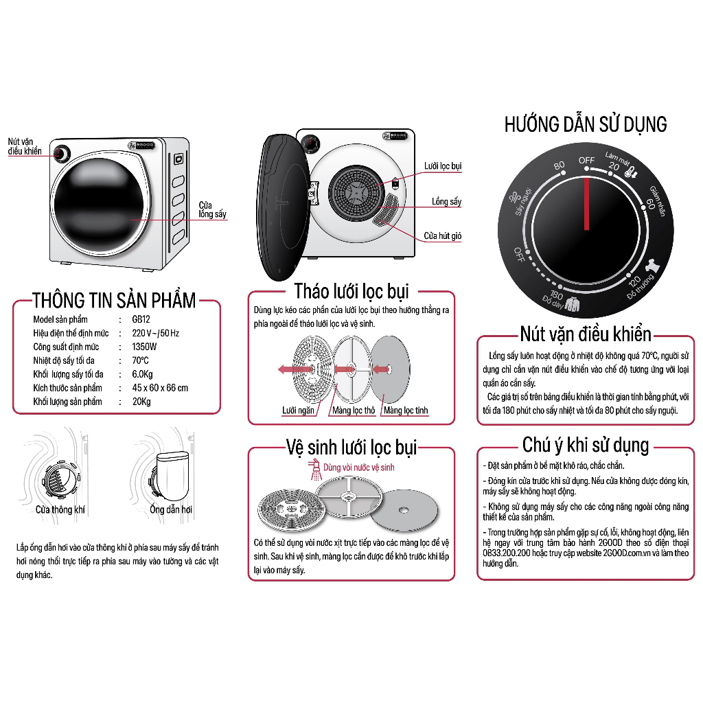 Ưu điểm của máy sấy quần áo 2GOOD GB12