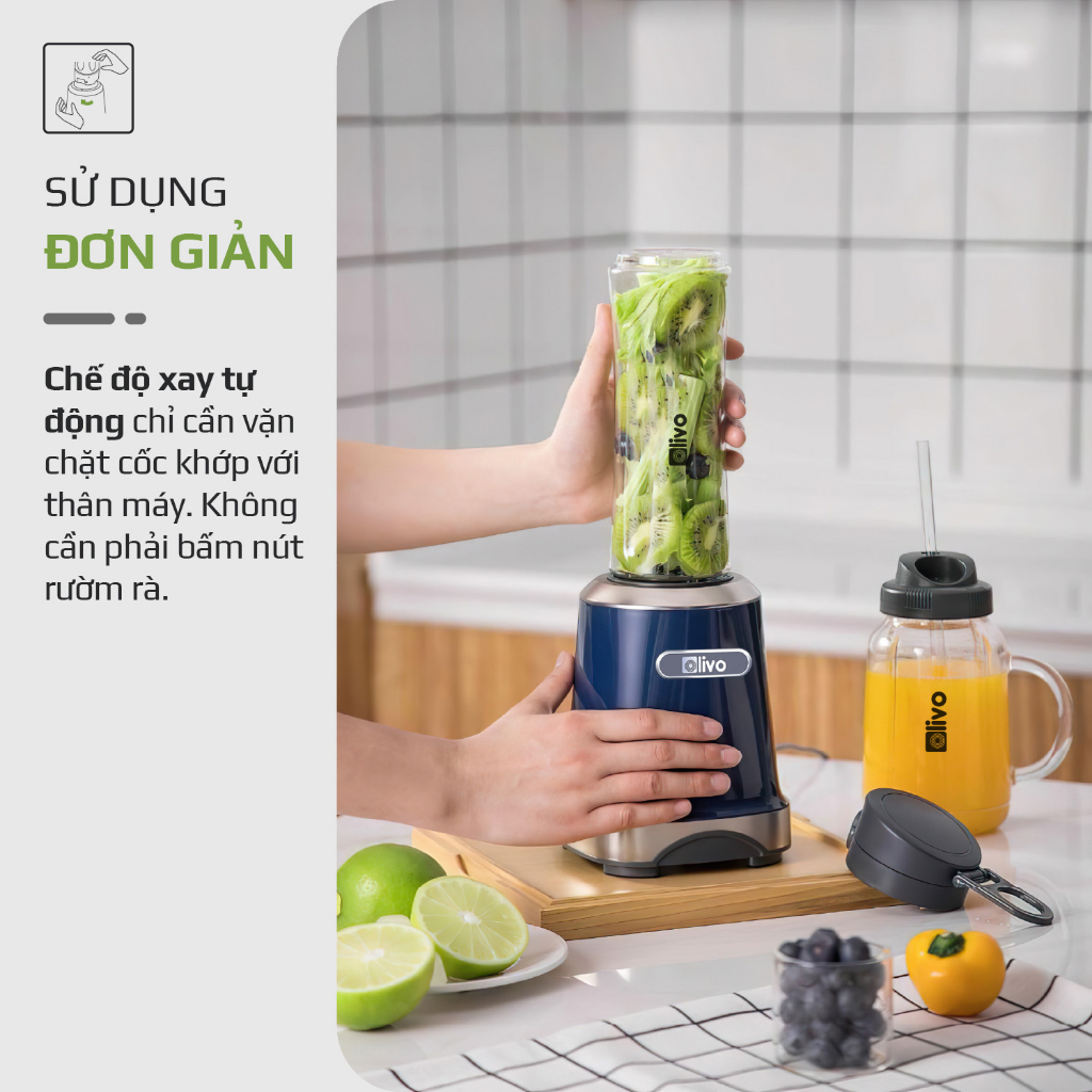 – Chính vì lẽ đó, OLIVO đã nghiên cứu và phát triển để cho ra đời các dòng MÁY XAY SINH TỐ THẾ HỆ MỚI, đa dạng tính năng, phù hợp với nhu cầu của mọi nhà, từ cá nhân đến gia đình đông người. Được phát triển dựa trên sự thấu hiểu nhu cầu người Việt, Máy Xay Sinh Tố OLIVO MB300 không chỉ tiện ích mà còn hỗ trợ tối đa việc giữ chất dinh dưỡng trong các thức uống, mang lại sức khỏe và niềm vui cuộc sống mỗi ngày.