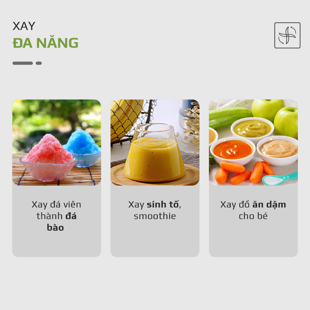 – Lưỡi dao sắc bén kết hợp với tốc độ xay mạnh mẽ 24.000 vòng/phút đảm bảo xay nhuyễn mịn, nhanh chóng mọi loại nguyên liệu.